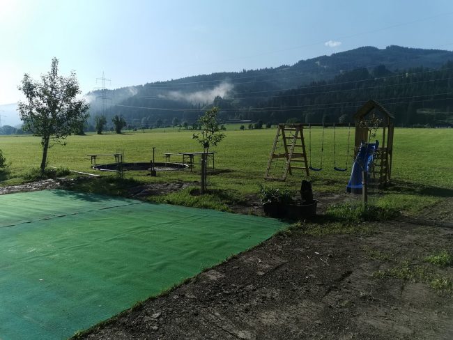 Die Arbeiten für unseren neuen Kinderspielplatz sind in vollem Gange. Ab Ende Juni können der Pool, die Spielanlage, das Trampolin und unser Tischtennisplatz gerne von unseren Gästen mitgenützt werden.