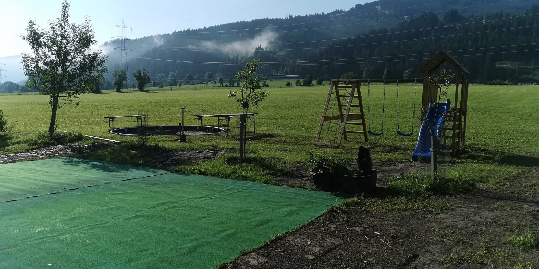Die Arbeiten für unseren neuen Kinderspielplatz sind in vollem Gange. Ab Ende Juni können der Pool, die Spielanlage, das Trampolin und unser Tischtennisplatz gerne von unseren Gästen mitgenützt werden.